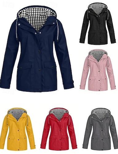نسائي جاكيت كاجوال سترات المطر المقاومة للماء ومعاطف المطر مقاوم للماء ضد الهواء سحاب جيب موضة الخارج سهل مناسب للخارج عطلة نهاية الاسبوع سحاب عادية مع قبعة عادي كم طويل ملابس خارجية أسود أصفر أحمر