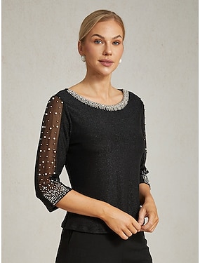نسائي قمم متأنق أنيق يوميا سيدات 3/4 الكم رقبة عالية مدورة قمصان عادية ضيف حفل زفاف ملابس الحفلات والسهرات شبه رسمي مطرز ميتالك Illusion أسود الربيع الخريف الشتاء