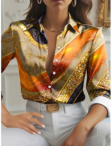 نسائي قمصان العمل الرسم هندسي أنيق الحديث كاجوال كم طويل قبعة القميص قمصان عادية عمل ملابس الحفلات والسهرات مناسب للبس اليومي فضي أزرق أرجواني ذهبي أخضر الخريف الشتاء الربيع، الخريف، الشتاء، الصيف