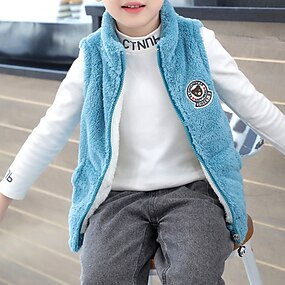 أطفال للصبيان سترة معطف ملابس خارجية لون الصلبة بدون كم معطف الأماكن المفتوحة قطن يوميا أزرق أزرق داكن الخريف الشتاء 7-13 سنة