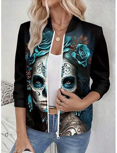 نسائي جاكيت كاجوال الدفء سريع جاف سحاب جيب أنيق موضة يوميا بسيط جماجم عطلة فضفاض مناسب للبس اليومي مناسب للعطلات عادية طوق البيسبول عادي كم طويل ملابس خارجية أزرق أرجواني أخضر الربيع الخريف