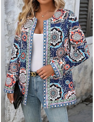 نسائي جاكيت كاجوال مريح متنفس جيب الأمام مفتوح كاجوال بوهو فينتاج ورد فضفاض مناسب للبس اليومي الأمام مفتوح طويلة كرونيك عادي كم طويل ملابس خارجية أزرق أرجواني الربيع الخريف