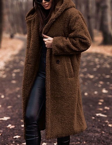نسائي معطف شتوي سترة الصوف الدفء مريح جيب Buttons موضة كاجوال سهل عطلة شارع فضفاض مناسب للبس اليومي صدر فردي طويلة مع قبعة عادي كم طويل ملابس خارجية بني الخريف الشتاء