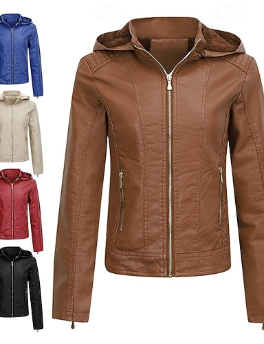 نسائي جواكيت جلد الدفء مريح سحاب جيب كاجوال لون الصلبة عطلة شارع فضفاض مناسب للبس اليومي عادية مع قبعة عادي كم طويل ملابس خارجية أسود نبيذ أزرق الخريف الشتاء