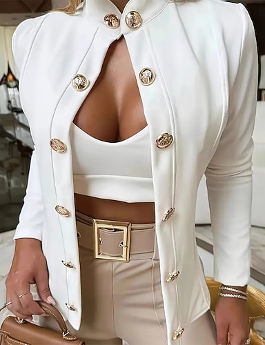 نسائي سترة مريح متنفس Buttons موضة الحديث سهل عمل مناسب للبس اليومي عادية مرتفعة عادي كم طويل ملابس خارجية أبيض الربيع الخريف