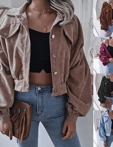 نسائي جاكيت جاكيت كاجوال مريح جيب Buttons كاجوال سهل عطلة شارع مناسب للبس اليومي مناسب للخارج قصيرة طوي عادي كم طويل ملابس خارجية أزرق فاتح أسود نبيذ الخريف الشتاء