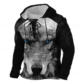 رجالي ذئب 3D كنزات بقبعة أنيق كاجوال كم طويل مع قبعة مناسب للعطلات ملابس الشارع أسود بني رباط الرسوم البيانية الخريف الشتاء مصمم