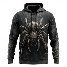 Halloween رجالي SPIDER 3D قبعة كنزة بانغك مبالغ فيه رقبة عالية مدورة نادي ملابس الشارع أسود 1 أسود رباط الخريف الشتاء مصمم