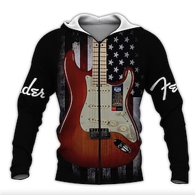 احتفال موسيقي رجالي مطبوعات غرافيك قيثارة قبعة كنزات بقبعة كنزة ملابس رياضية كاجوال كم طويل مع قبعة فضفاض مناسب للبس اليومي الرياضة أسود سحاب طباعة ربيع & الصيف مصمم