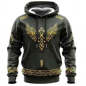 رجالي الفايكينج كنزات بقبعة كنزة موضة كوول كم طويل رقبة عالية مدورة مناسب للحفلات مناسب للعطلات ملابس الشارع أسود رباط الخريف الشتاء مصمم