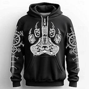 رجالي الرسم درع الفايكينج قبعة كنزات بقبعة كنزة ملابس رياضية كاجوال كم طويل مع قبعة فضفاض مناسب للبس اليومي مناسب للعطلات أسود طباعة ربيع & الصيف مصمم