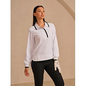 نسائي قميص بولو زر حتى بولو أسود أبيض كم طويل قمم ملابس الجولف للسيدات، ملابس ملابس