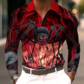 Halloween رجالي SPIDER بولو ستايل كم طويل قمصان البولو Lapel كاجوال داكن شارع ملابس الرياضة مناسب للبس اليومي طباعة ثلاثية الأبعاد Buttons الربيع الخريف الشتاء أحمر