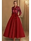 فستان كوكتييل A-Line أنيق فستان رسمي صيفي بطول الشاي بأكمام 3/4 على كتف واحد ساتان مع ربطة