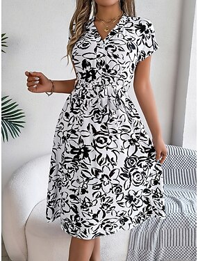 نسائي فستان قصير لباس غير رسمي فستان مشجر كلاسيكي الحديث مناسب للبس اليومي عطلة نهاية الاسبوع عادي زهور كم قصير V رقبة أبيض الصيف