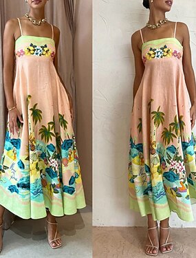 نسائي فستان ميدي لباس صيفي زلة اللباس فستان مطبوع موضة كلاسيكي عطلة شاطئ عطلة نهاية الاسبوع عادي استوائي بدون كم حمالات سباكيتي زهري فاتح الصيف