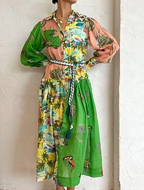 نسائي فستان ميدي شيرت دريس فستان سوينج فستان مطبوع موضة كلاسيكي الحديث الأماكن المفتوحة عطلة مناسب للعطلات عادي زهور كم طويل قبعة القميص أخضر الخريف