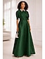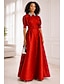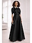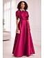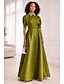 A-الخط طول الأرض فستان ستان فستان زفاف ضيف فستان رسمي فستان أم العروس كم قصير رقبة عالية أنيق رسمي ضيف حفل زفاف شبه رسمي ساتان مع شريط و شاح روش