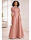 A-الخط عامودي طول الأرض فستان زفاف ضيف فستان رسمي فستان سهرة فستان أم العروس 3/4 الكم V رقبة أنيق رسمي ضيف حفل زفاف شبه رسمي ساتان مع شريط و شاح مكعب التلوين