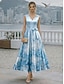 A-الخط طول الكعب فستان الحفلة فستان كوكتيل فستان زفاف ضيف فستان أم العروس بدون كم V رقبة أنيق عتيق رسمي ضيف حفل زفاف حفلة كوكتيل مع زهور طباعة