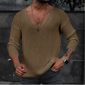 رجالي كنزة صوفية سترة متماسكة مضلع كابل متماسك متماسكة قمصان عادية محبوك سهل V رقبة موضة أساسي عطلة مناسب للبس اليومي ملابس خريف & شتاء أسود أبيض S M L