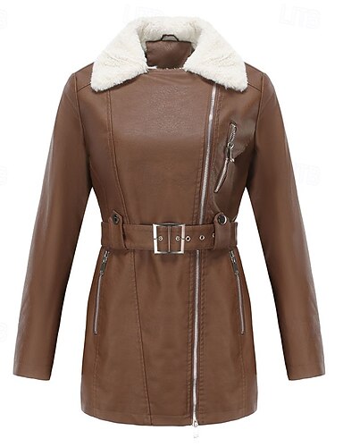 نسائي جواكيت جلد سترة شيربا الدفء مريح سحاب جيب مع حزام كاجوال لون الصلبة عطلة شارع فضفاض مناسب للبس اليومي عادية طوي عادي كم طويل ملابس خارجية أسود أزرق جمل الخريف الشتاء