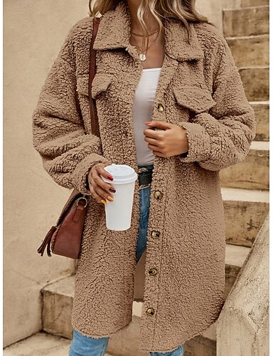 نسائي معطف شتوي سترة شيربا مريح متنفس جيب Buttons كاجوال سهل عطلة شارع فضفاض مناسب للبس اليومي صدر فردي طويلة طوي عادي كم طويل ملابس خارجية أسود نبيذ رمادي غامق الربيع الخريف