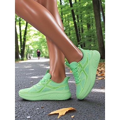 حذاء جري شبكي نسائي - حذاء رياضي خفيف الوزن قابل للتهوية برباط للركض في الحديقة وتدريب اللياقة البدنية