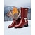 أحذية نسائية مبطنة بالفرو الدافئ حتى منتصف الساق مع كعب منخفض، أحذية ثلج شتوية من الجلد الصناعي باللون الأحمر، أحذية أنيقة مريحة مقاومة للانزلاق للطقس البارد والسفر في الهواء الطلق وارتداء العطلات