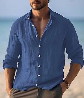 رجالي قميص قميص كتان قميص صيفي ملابس الشاطئ زر حتى القميص سهل عطلة فضفاض أسود أبيض وردي بلاشيهغ أزرق البحرية كم طويل طوي للربيع والصيف ملابس