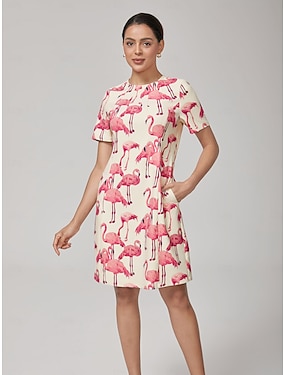 فستان قصير مطاطي بطبعة طائر الفلامنجو