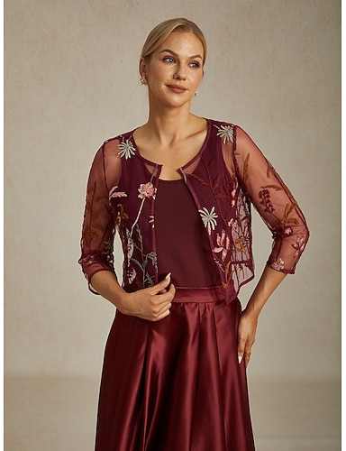 نسائي قمصان الدانتيل ورد أنيق رقبة عالية مدورة قمصان قصيرة ضيف حفل زفاف ملابس الحفلات والسهرات دانتيل مطرز نبيذ الصيف الربيع الخريف