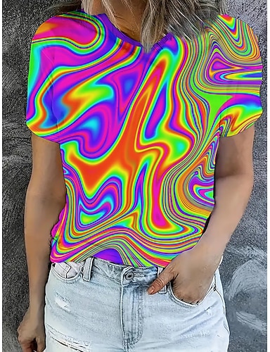 نسائي تي شيرت قمم الصيف الرسم 3D كلاسيكي كاجوال كم قصير رقبة عالية مدورة قمصان قصيرة مناسب للبس اليومي عطلة نهاية الاسبوع طباعة التقزح اللوني الصيف الربيع الخريف