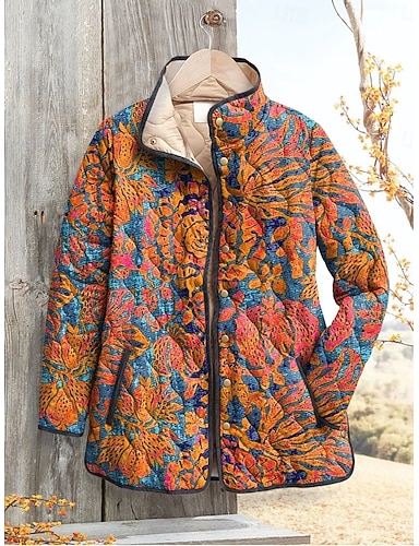نسائي جاكيت شتوي سترة البخاخ الدفء مريح جيب Buttons طباعة موضة يوميا الخارج ورد عطلة فضفاض مناسب للبس اليومي صدر فردي عادية مرتفعة عادي كم طويل ملابس خارجية أزرق أخضر داكن برتقالي الخريف الشتاء