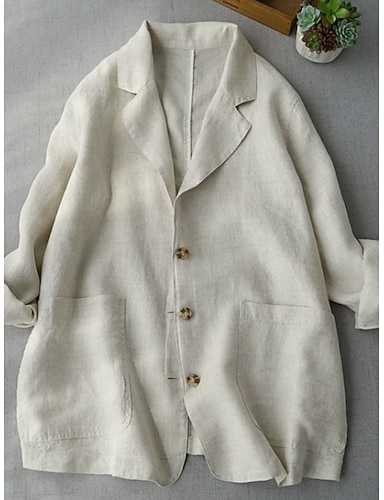 نسائي سترة مريح متنفس جيب Buttons موضة يوميا سهل الأماكن المفتوحة فضفاض مناسب للبس اليومي صدر فردي عادية Lapel عادي كم طويل ملابس خارجية أزرق البحرية البيج الربيع الخريف