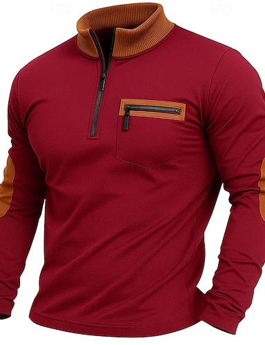 رجالي تي شيرت كم طويل مرتفعة نصف سحاب الخريف الشتاء ربيع & الصيف ألوان متناوبة عتيق يوميا كاجوال جيب مكعبات الألوان الأماكن المفتوحة فضفاض ملابس الرياضة أسود نبيذ أخضر تي شيرت للرجال