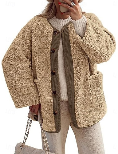 نسائي معطف شتوي معطف تيدي مريح متنفس جيب Buttons كاجوال سهل عطلة شارع فضفاض مناسب للبس اليومي صدر فردي عادية طوي فضفاض صالح كم طويل ملابس خارجية أسود نبيذ بني الربيع الخريف