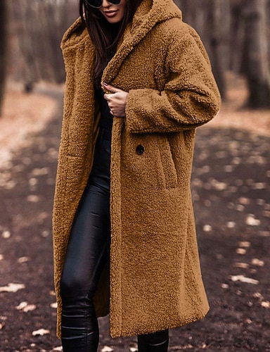 نسائي معطف شتوي سترة الصوف الدفء مريح جيب Buttons موضة كاجوال سهل عطلة شارع فضفاض مناسب للبس اليومي صدر فردي طويلة مع قبعة عادي كم طويل ملابس خارجية بني الخريف الشتاء