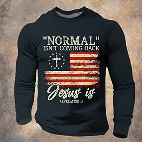 عيد المحاربين يوم الرجال الوطنيين المحاربين القدامى علم أمريكا الوطنية تي شيرت طويل الأكمام قميص طباعة ثلاثية الأبعاد قميص دائري العنق رياضة يومية مصمم الشارع غير رسمي للخروج أسود أخضر داكن أزرق داكن