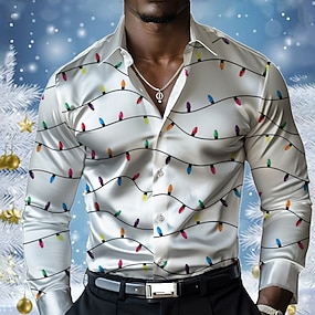 عيد الميلاد المجيد رجالي فوانيس أضواء كريستمس قميص قميص رسمي زر حتى القميص كم طويل كاجوال عطلة ملابس الحفلات والسهرات مناسب للبس اليومي الصيف الربيع الخريف قميص بياقة طباعة ثلاثية الأبعاد أبيض
