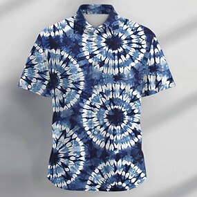 رجالي تاي داي قميص زر حتى القميص كم قصير كاجوال عطلة مناسب للبس اليومي حفلة ليلية الصيف طوي قميص بياقة Buttons طباعة أزرق برتقالي أزرق داكن