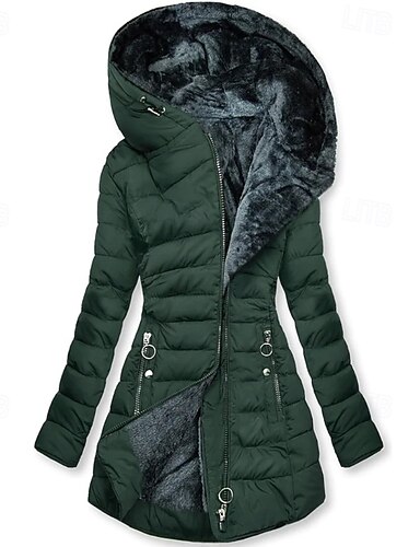 نسائي معطف شتوي جاكيت شتوي حديقة ضد الهواء الدفء سحاب جيب رباط طوق الفراء أنيق أسلوب الشارع سهل شارع فضفاض مناسب للبس اليومي سحاب عادية هودي عادي كم طويل ملابس خارجية أسود أخضر داكن أزرق داكن