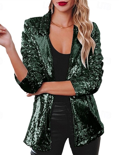 نسائي سترة القميص سترة مريح متنفس ترتر موضة يوميا سهل الأماكن المفتوحة فضفاض مناسب للبس اليومي عادية Lapel عادي كم طويل ملابس خارجية فضي أسود نبيذ الربيع الخريف