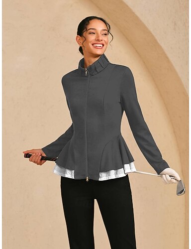نسائي سترات الجولف سكني غامق أسود أبيض كم طويل قمم ملابس الجولف للسيدات، ملابس ملابس