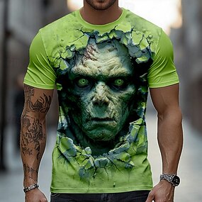 Halloween رجالي 3D طباعة الزومبي 3D تي شيرت كم قصير تي شيرت طباعة ثلاثية الأبعاد رقبة عالية مدورة قميص مبالغ فيه مصمم الرعب مناسب للحفلات شارع مناسب للعطلات أخضر 1 # أخضر 2 # الأخضر 3 #