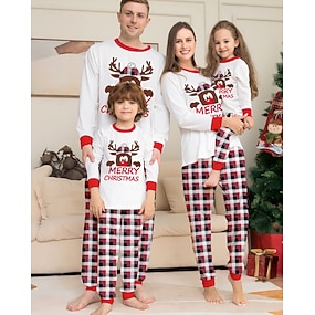 نظرة العائلة منامة منقوش نمط عيد الميلاد المنزل طباعة أبيض كم طويل نشيط ملابس مطابقة