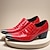 أحذية رجال جلدية حمراء بتصميم سهل الارتداء مع خطوط مطبوعة فريدة بطرف ذهبي - أحذية غربية عصرية للاستخدام اليومي