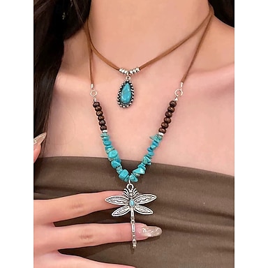 قلادة نسائية متعددة الطبقات من الفيروز على شكل يعسوب - مجموعة مجوهرات بوهيمية للمهرجانات والملابس غير الرسمية والهدايا