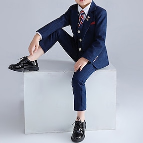 3/4/5 قطع بدلة حامل الخواتم للصبيان أطفال بدلة البدلة الرسمية بليزر وصدرية وبنطلون رسمي مناسب للحفلات عيد الحب موضة كوول منقوش جيب أزرق البحرية بوليستر