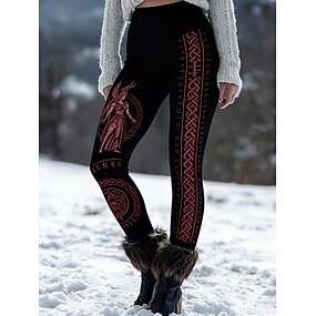نسائي الفايكينج طماق بنطال ضيق مريح العطلة عتيق النمط العرقي مكتمل الطول خصر عالي الرسم حيوان طبع مريح قابل للبسط فضفاض مناسب للبس اليومي الأماكن المفتوحة أسود الربيع الخريف الشتاء قياس نحيل